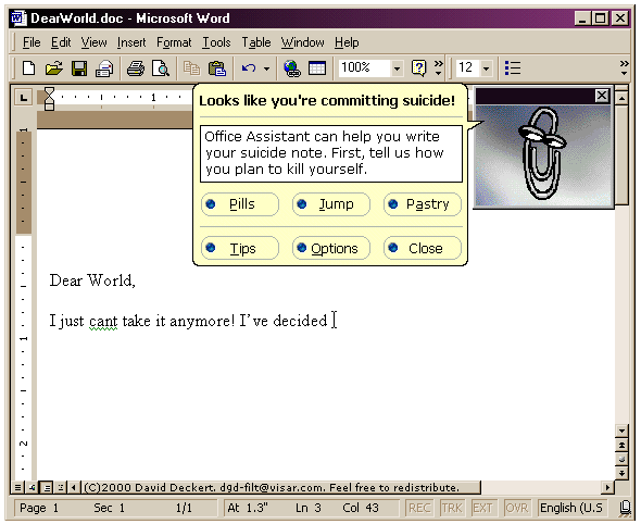 David Beckham had a near-death experience the other day when he went riding. Everything was going fine until the horse started bucking up and down out of control. He tried with all his might to hang on but it was no good. With his foot caught in the stirrup, he fell head-first to the ground.His head continued to bump on the ground as the horse refused to stop or even slow down.Fortunately, however, there was a happy ending. Just as he was giving up hope and losing consciousness, the Woolworth's' manager came along and unplugged it.